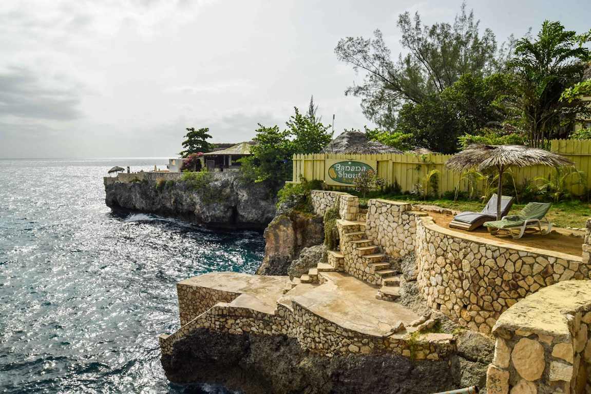 3. Banana Shout es una ubicación íntima y privada de 4 cabañas únicas de estilo jamaicano ubicadas en el borde del acantilado de 30 pies de Negril West End, todas que ofrecen una espectacular vista del atardecer junto al mar y una cala privada para bucear.