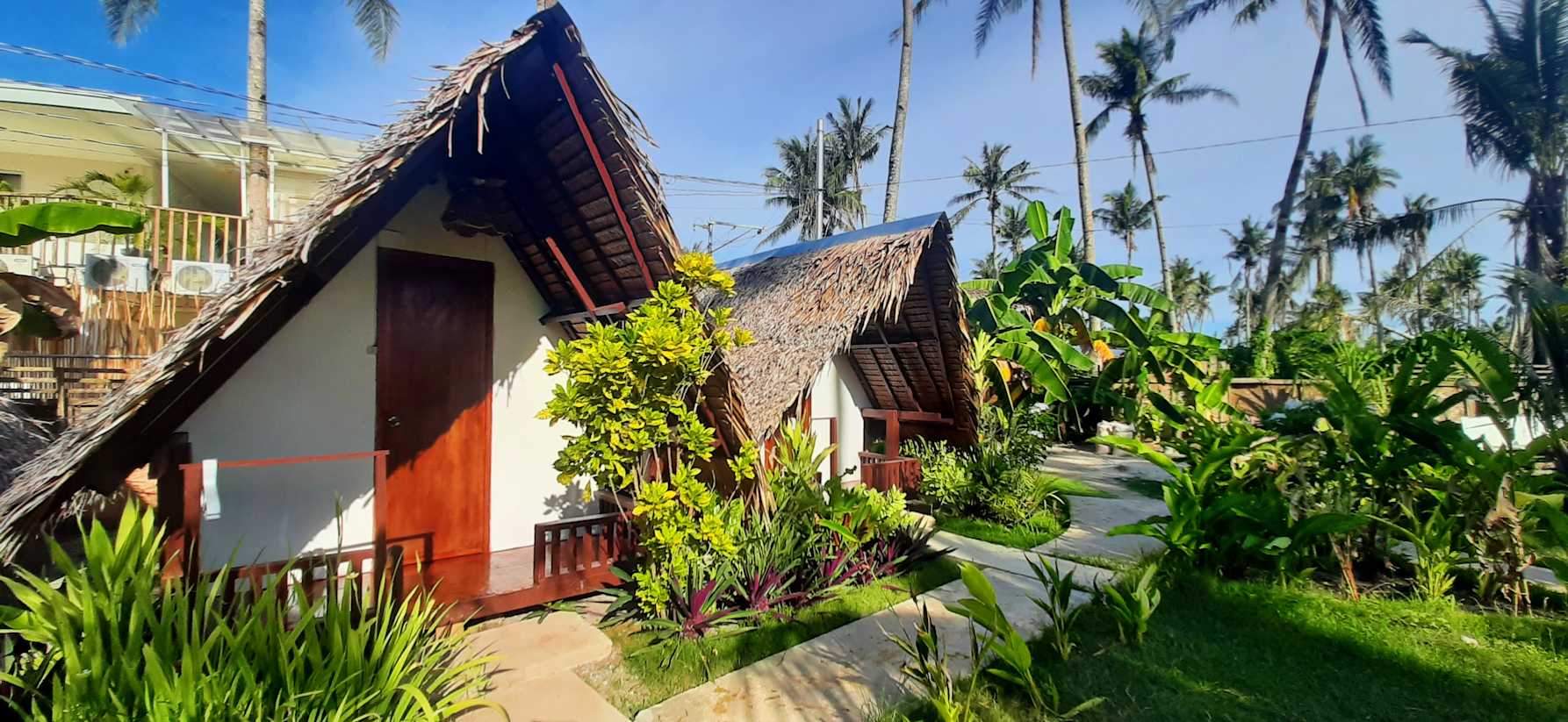 Relájese, relaje y experimente la vida de la isla en nuestra porción de paraíso. Tenemos 4 cabañas de aire acondicionado (cada una buena para 2 personas) con balcones con vista a nuestra hermosa vista de jardín. Hay una zona de asientos al aire libre cubierta y una cocina comunitaria para que los huéspedes los usen gratis y también café y agua potable. Wifi también está disponible en toda la propiedad de forma gratuita.